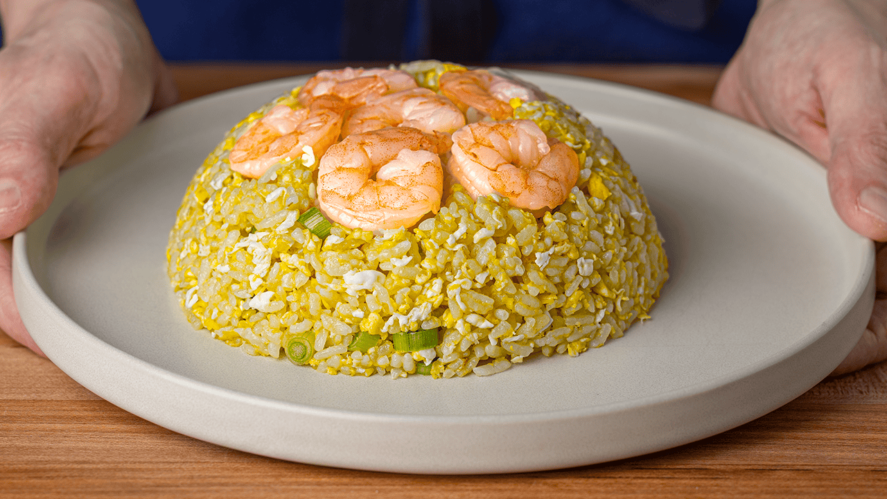 Din Tai Fung makes one of the most popular fried rice dishes in the world with five ingredients. No soy sauce. No day-old rice. No butter. No sesame oil. Just eggs, rice, shrimp, scallions, and a three-part seasoning blend they call House Seasoning.